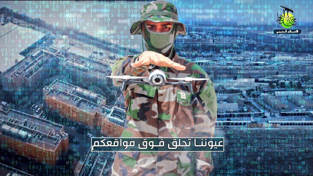 A primeira organização recém-emergida se identificou como “A Liga Revolucionária” (Usbat al-Thaereen). Em seu primeiro comunicado, mostrou fotos de drones com excelente resolução da embaixada dos EUA em Bagdá em todos os seus detalhes, construção, helicópteros, movimentação de pessoal e forças militares em seu interior. O que chama a atenção não são apenas os detalhes e a alta qualidade das imagens dos drones, mas como um drone conseguiu voar por longos minutos sobre os edifícios mais vigiados da capital iraquiana. Esses prédios abrigam três brigadas do exército iraquiano (6, 11 e 17), a brigada antiterrorista, a sede da polícia federal, o Ministério do Interior e a polícia local. As forças dos EUA estão posicionadas no aeroporto de Bagdá (não muito longe) e dentro da Embaixada.